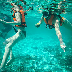 A perfect combination for water and nature lovers. Akumal Bay is one of the best places in the world to swim alongside sea turtles in their natural habitat, without cages or artificial enclosures. The included snorkeling equipment (life jacket, mask, and flashlight) will allow you to explore the reef with complete safety. Afterward, choose between an open or cave cenote to complete your aquatic experience. Includes private transportation with hotel pickup, complete snorkeling equipment, and a cooler with water, sodas, and snacks. Optional lunch stop.